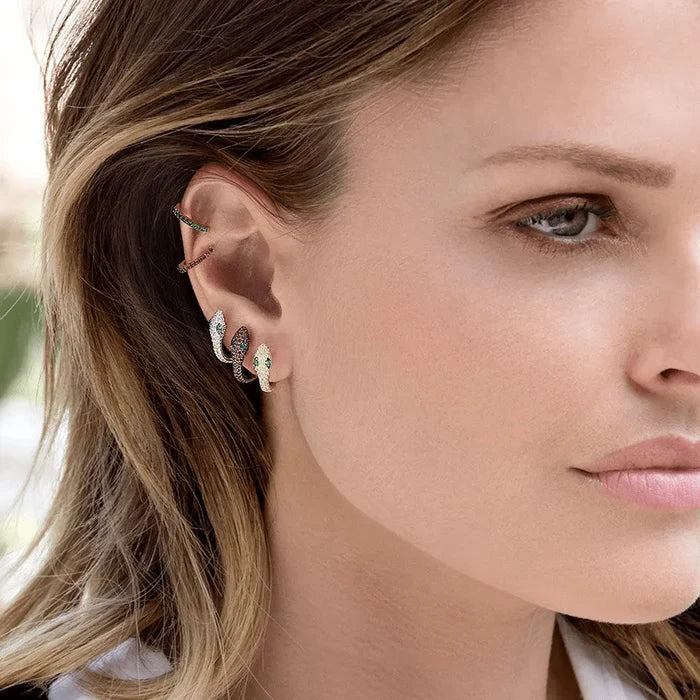 O Brinco Argola de Cobra com Zircônias é uma joia ousada e sofisticada, perfeita para mulheres que gostam de estilo e personalidade. Inspirado na elegância misteriosa da serpente, o design apresenta o corpo da cobra em formato de argola, totalmente cravejado com microzircônias que garantem um brilho luxuoso.