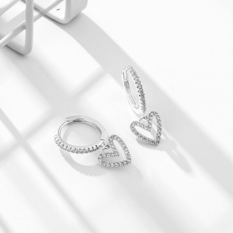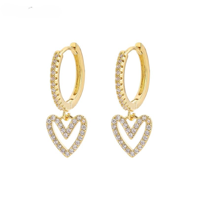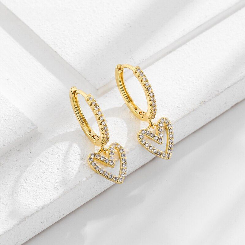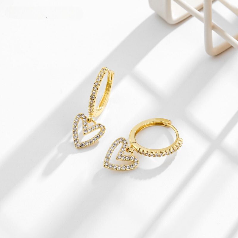 O design do brinco apresenta um delicado coração, cuidadosamente esculpido em metal precioso, como ouro ou prata, que celebra o símbolo universal do amor. As zircônias, estrategicamente cravejadas no coração, cintilam como pequenos diamantes, criando um efeito de brilho irresistível.