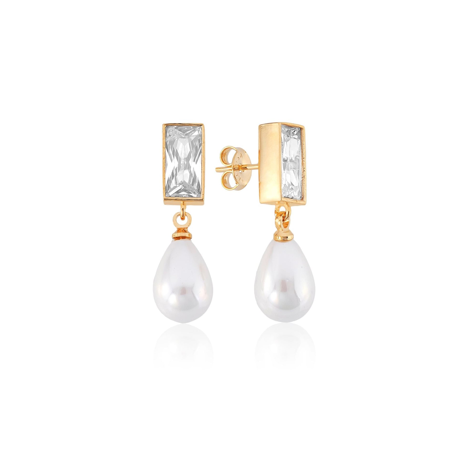 Esse Brinco de Pérola tem um visual clássico e refinado, com cristal retangular, ideal para eventos sofisticados ou uso elegante no dia a dia.